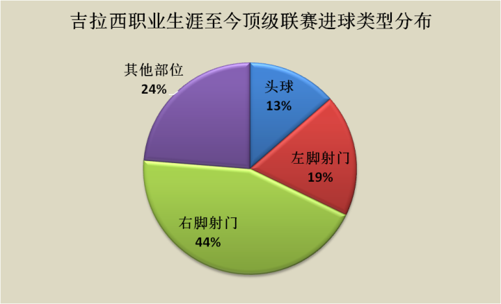 身高1米87的吉拉西在顶级联赛中共计只有过8次头球破门,仅占到总进球数的约13.6%,右脚进球数可以占到44.1%。