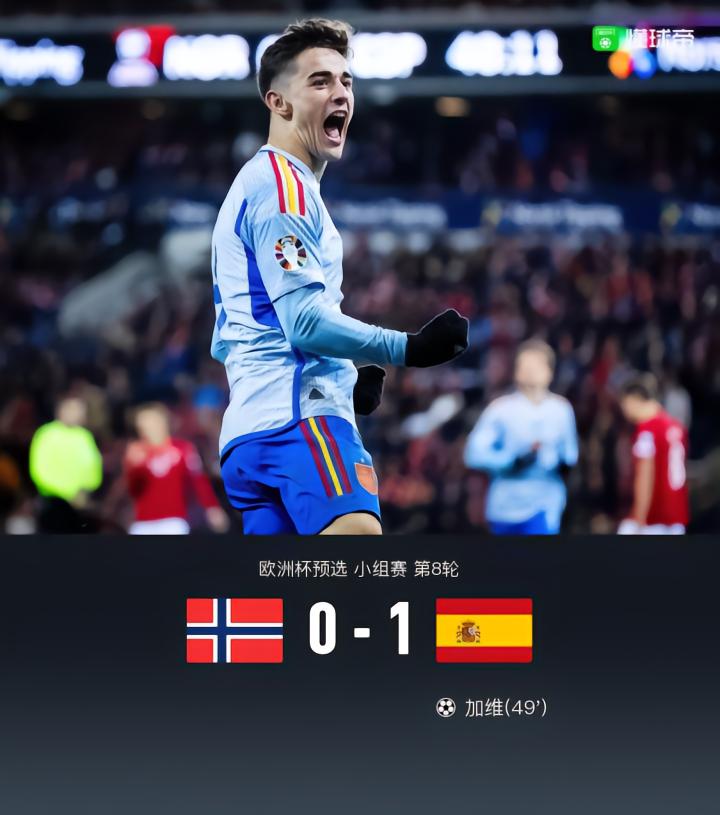 西班牙1-0挪威提前出线,加维制胜,莫拉塔多次下饭表现