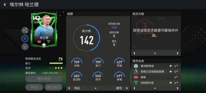 游戏中创始俱乐部活动推出的这张初始等级142版本的哈兰德,也完美契合他顶尖锋霸的身份。哈兰德能突能带,有绝对速度与过硬的身体素质,狂飙突进的球风往往能带给玩家们极致畅爽的游戏体验。