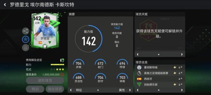 游戏中的罗德里是高位拦截的佼佼者。在球队整体压上时,他会冷静地占住弧顶位置负责最后的拦截与对抗,位置意识超强的他在实战中能给玩家们带来十足的防守安全感。他的身材模型高大,人球结合能力不凡,擅长正面防守与球路拦截。