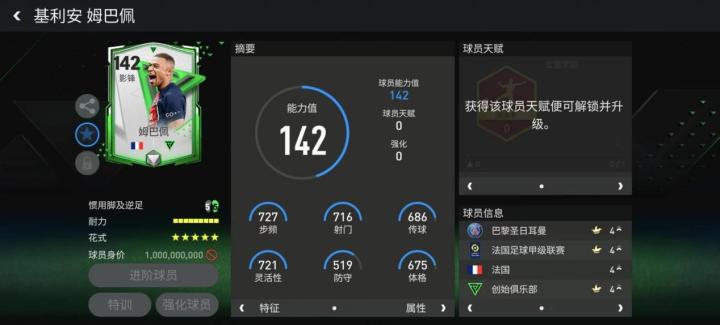 创始俱乐部活动破天荒的给出了一张影锋位置的姆巴佩。位置的特殊性使得这张姆巴佩在玩家之中异常抢手。他的敏捷属性与对皮球落点的捕捉能力在这个位置得到了极大程度的凸显,在队友的掩护下,他可以从容地潜入禁区寻找战机并打入关键进球。