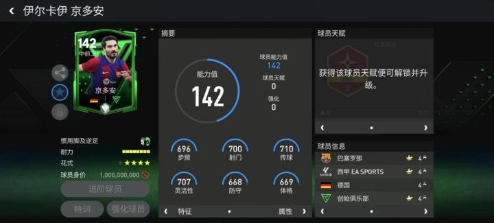 游戏中的京多安在肋部作业上具备绝对的不可替代性。他的前插与策应能力放眼当下是独一无二的存在。他可以给到高压逼抢战术以最大的支持,在实战中能够不断拼抢二点球,绝不放过任何一个进球的可能。