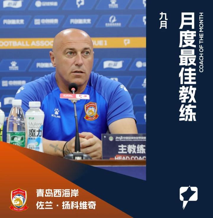 北京时间10月16日,来自中甲联赛的官方消息,青岛西海岸队主帅佐兰-扬科维奇当选中甲联赛9月份最佳教练。