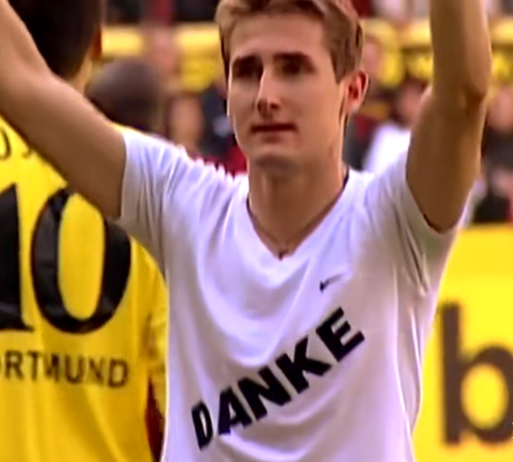 克洛泽为了拯救濒临破产的母队凯泽斯劳滕,转会至德甲劲旅云达不莱梅。凯泽斯劳滕的球迷们最终还是无奈的迎来他们最不希望看到的离别的时刻。此时的看台球迷是种种不舍,而克洛泽穿着印有DANKE(德语谢谢)的白色T恤绕场一周,他在感谢这个让他从默默无闻的普通人成为家喻户晓的运动员的地方。