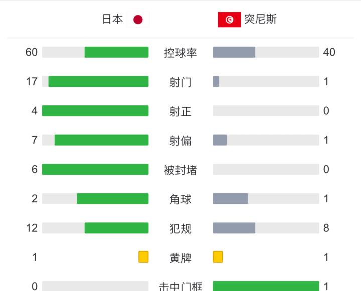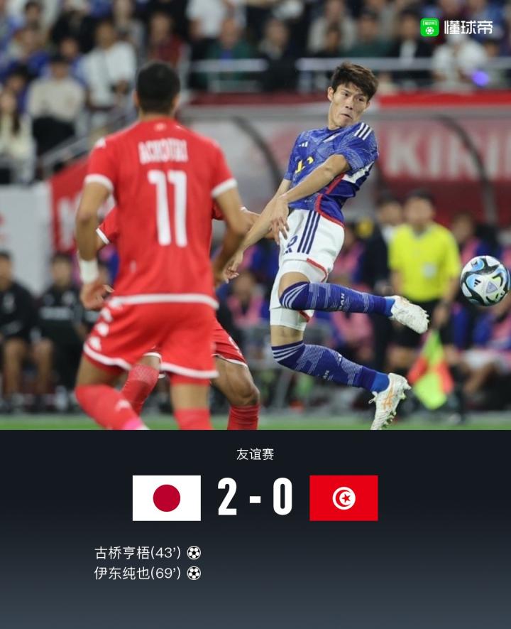 日本2-0突尼斯,古桥亨梧、伊东纯也建功,突尼斯仅一次射门