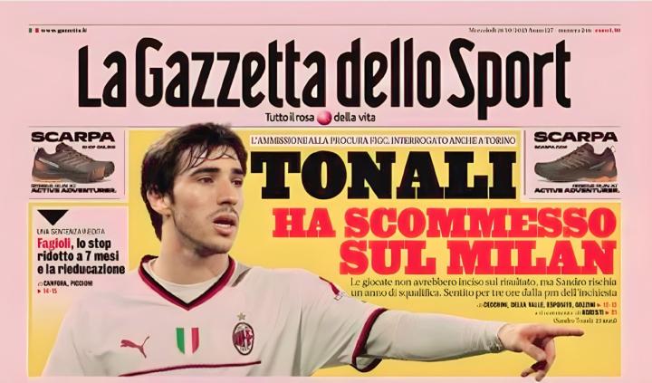 根据今日即将出版的《米兰体育报》头版消息,托纳利已经承认自己在效力于米兰期间投注过米兰的比赛。