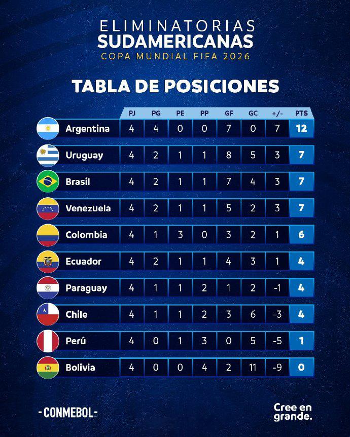 2026南美世预赛四轮过后最新积分榜阿根廷豪取四...丢失的一角 @懂球帝2023-10-18 13:432026南美世预赛四轮过后最新积分榜 阿根廷豪取四连胜以12分高居榜首,领先身后的第二集团军乌拉圭、巴西、委内瑞拉5分!展开更多