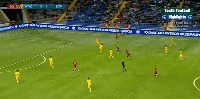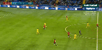 第21分钟,西班牙左路传中,马竞租借至米兰德斯的马丁头球摆渡,巴萨租借至赫罗纳的托雷转身射门打高。