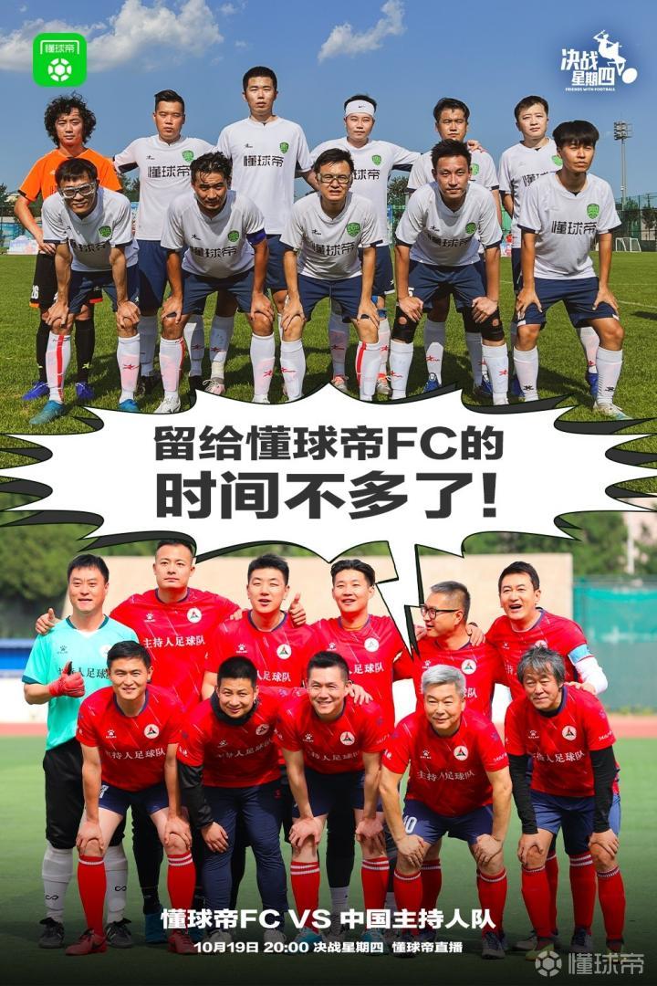 明天(10月19日)晚上20点,又一个元气满满的星期四,懂球帝FC将迎来一位重量级对手:中国主持人足球队!刘建宏老师、李响老师等大家耳熟能详的名嘴、知名编剧,也将参与到我们的“决战星期四”活动,将在绿茵场上和我们切磋一番。