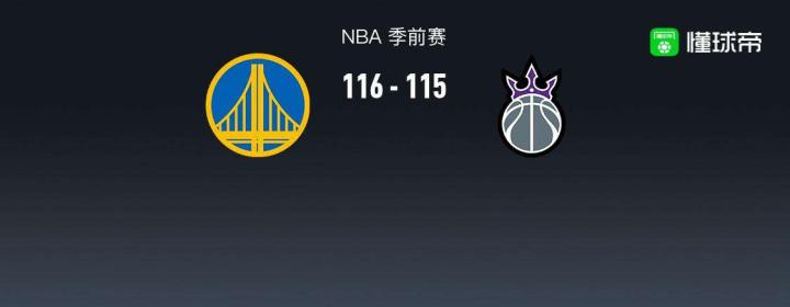 北京时间10月19日NBA 季前赛,金州勇士对阵萨克拉门托国王。半场勇士49-56国王,最终勇士116-115国王。金州勇士史蒂芬-库里27分4板5助,库明加18分6板2助;萨克拉门托国王德阿龙-福克斯25分7板3助,基根-穆雷24分8板2助。 赛况 第一节勇士史蒂芬-库里拿下6分,国王基根-穆雷拿下7分,首节战罢勇士22-23落后国王 第二节勇士维金斯拿下9分,国王达维昂-米切尔拿下14分,半场结束勇士49-56落后国王 第三节勇士史蒂芬-库里拿下8分,国王基根-穆雷拿下8分,第三节结束勇士76-89落后国王 第四节勇士史蒂芬-库里拿下13分,国王德阿龙-福克斯拿下11分,最终勇士116-115战胜国王 球员全场数据 金州勇士史蒂芬-库里27分4板5助1断1帽,库明加18分6板2助1断,维金斯16分1板3助1断1帽; 萨克拉门托国王德阿龙-福克斯25分7板3助2断1帽,基根-穆雷24分8板2助2断,达维昂-米切尔14分1帽。 首发阵容 金州勇士:史蒂芬-库里,库明加,维金斯,特雷斯戴维斯,克莱-汤普森; 萨克拉门托国王:德阿龙-福克斯,基根-穆雷,凯文-赫尔特,多曼塔斯-萨博尼斯,哈里森-巴恩斯。