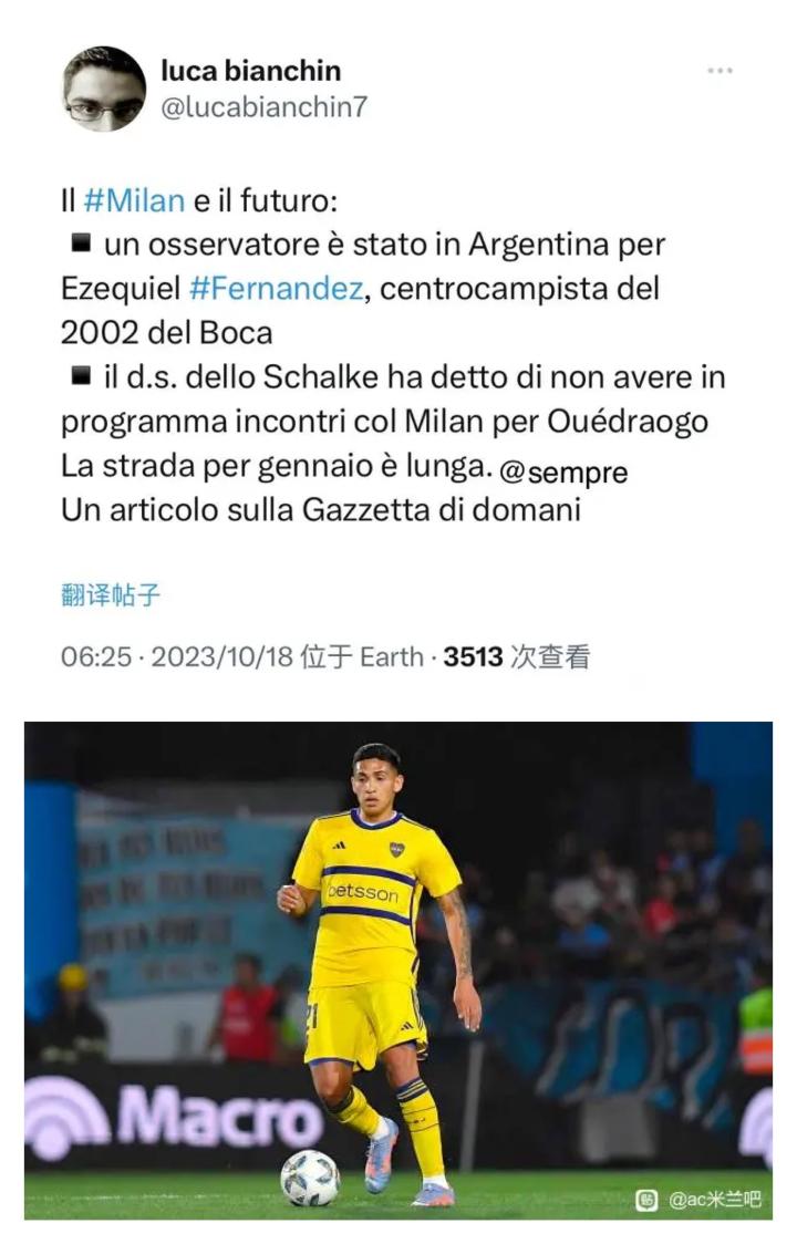 比安钦:米兰球探在阿根廷考察了博卡青年中场埃塞基...圣西罗卡卡_ @懂球帝2023-10-19 13:06比安钦:米兰球探在阿根廷考察了博卡青年中场埃塞基耶尔·费尔南德斯 米兰和未来: ▪️米兰一名球探在阿根廷观察了博卡2002 年中场球员埃塞基耶尔·费尔南德斯。 ▪️沙尔克体育总监表示他们没有为韦德拉奥果安排与米兰的会议。 通往一月的路还很长…展开更多