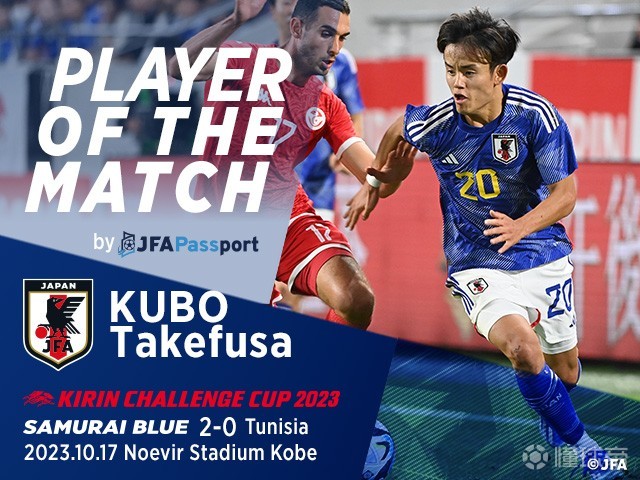 官方消息,日本前锋久保建英当选vs突尼斯球迷票选当场最佳球员。