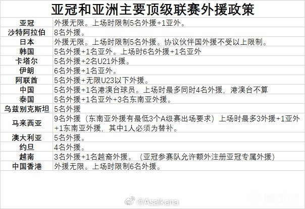 小作文的最后附今年亚冠和亚洲主要几个顶级联赛的外援政策,以供参考↓