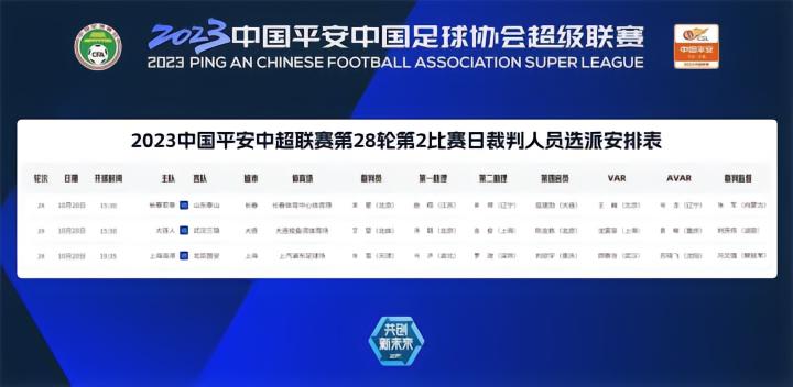 10月20日,2023赛季中超联赛第28轮即倒数第3轮,再赛3场。赛前,中超官方公布了这3场比赛的裁判人员选派安排表。