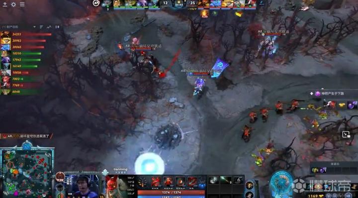 第25分钟,AR带盾推进,潮汐带边路线被直接逮捕!随后天肥幽鬼三刀斩下大圣,经济优势巨大!