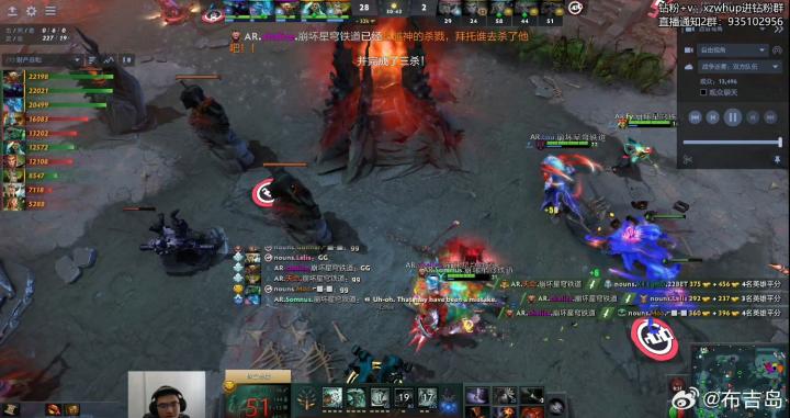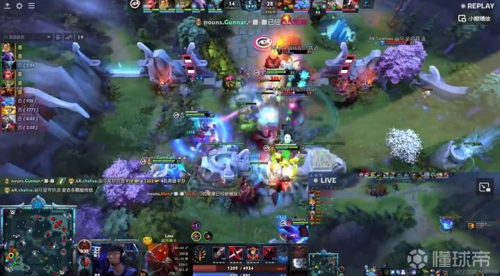 第35分钟高地团,K1的虚空假面被找到机会,Nouns所有的BKB都用来保命逃跑,AR顺势推进,白牛买活死!