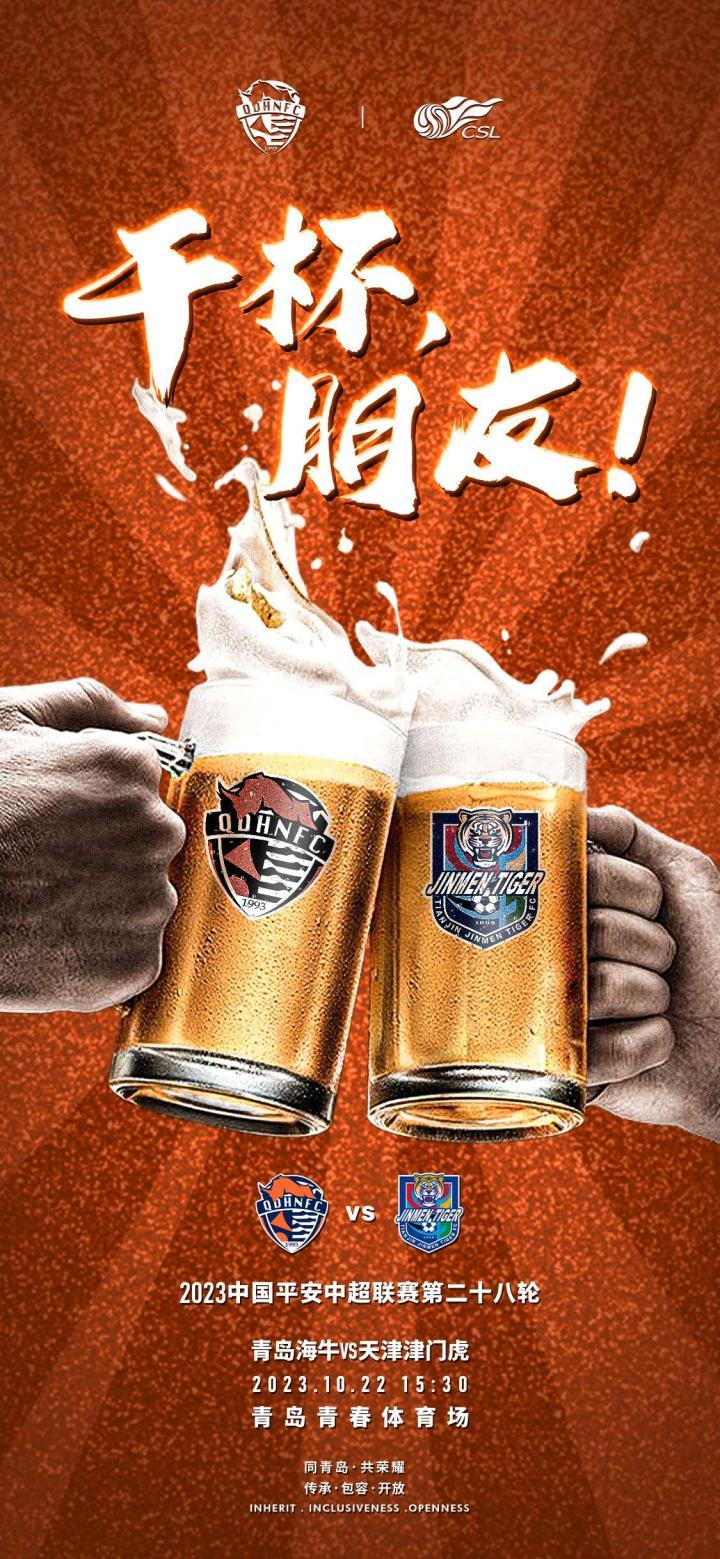🗓中国平安中超联赛第28轮⏰10月22日15:3...青岛海牛足球俱乐部官方账号 @懂球帝2023-10-21 15:54🗓中国平安中超联赛第28轮 ⏰10月22日15:30 🆚青岛海牛vs天津津门虎 ☀比赛日晴天15度-21度 🏟青春足球场 📺中央广播电视总台体育频道(CCTV-5)、天津广播电视台体育频道、腾讯体育、腾讯视频、腾讯新闻、极光TV、微信视频号、企鹅直播、央视频 @天津津门虎FC 你说好久不见,那就干杯朋友! 联赛倒数第二个主场,明天见呀!展开更多