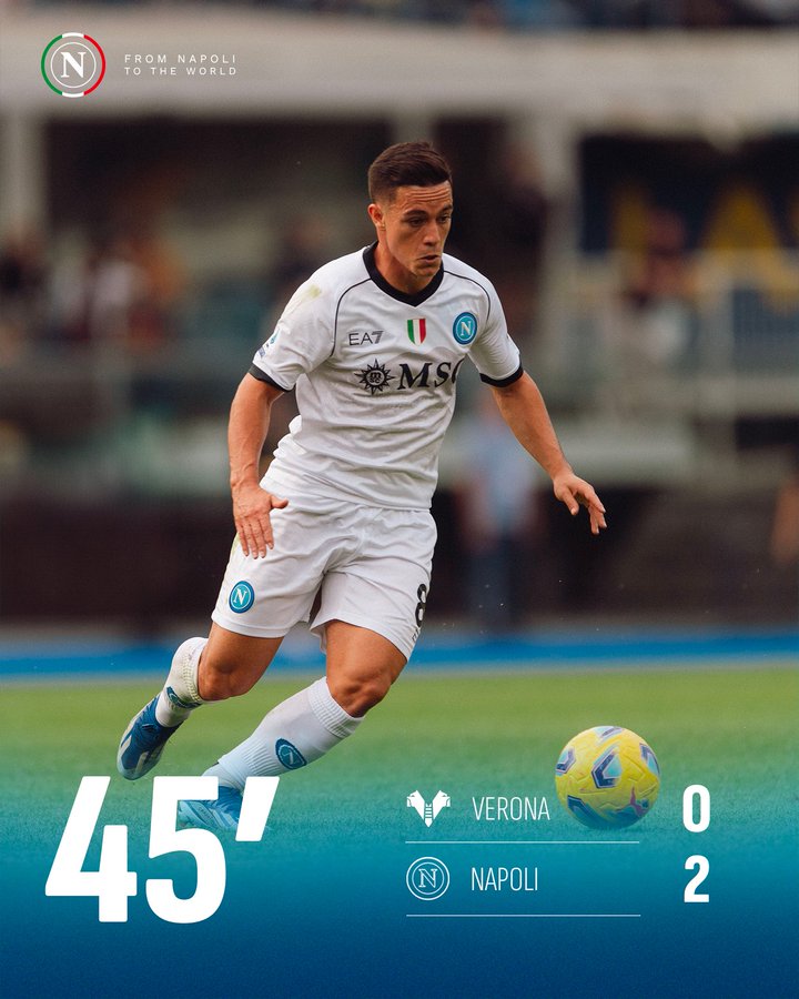 半场战报 | 第27分钟,拉斯帕多里左路传中,波...那不勒斯足球俱乐部 @懂球帝2023-10-21 21:52半场战报 | 第27分钟,拉斯帕多里左路传中,波利塔诺后点低射破门。第43分钟,波利塔诺送出助攻,克瓦拉茨赫利亚小角度射门得手。 我们半场2-0领先维罗纳!展开更多