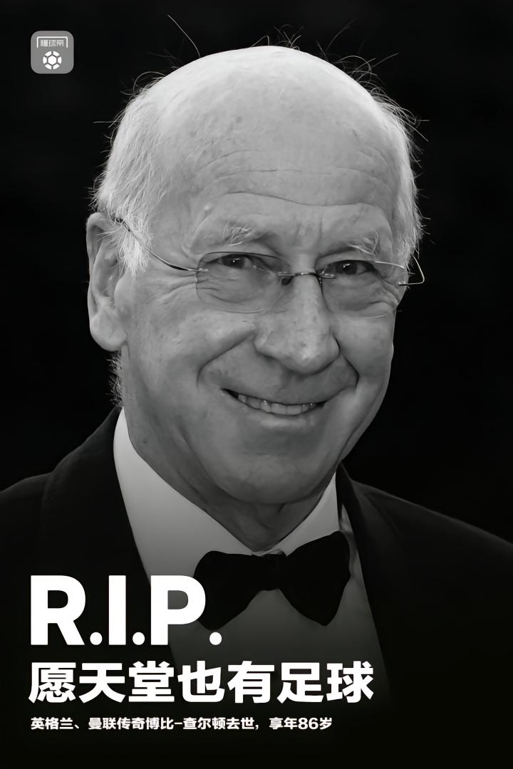 曼联官方在其社交平台上写道:“博比-查尔顿爵士永远地离开了我们,言语已经无法表达我们的悲伤。”