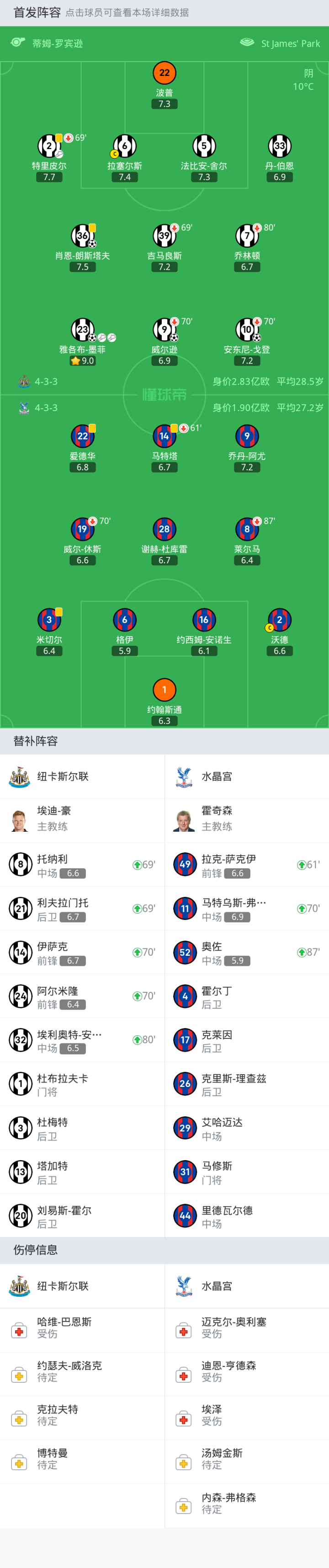 上场替补:70'24-阿尔米隆, 80'32-埃利奥特-安德森, 70'14-伊萨克, 69'8-托纳利, 69'21-利夫拉门托