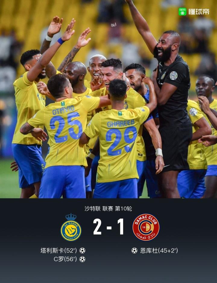 利雅得胜利2-1达马克,C罗任意球破门+2球被吹,塔利斯卡建功