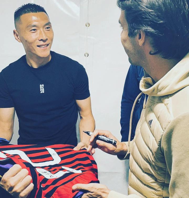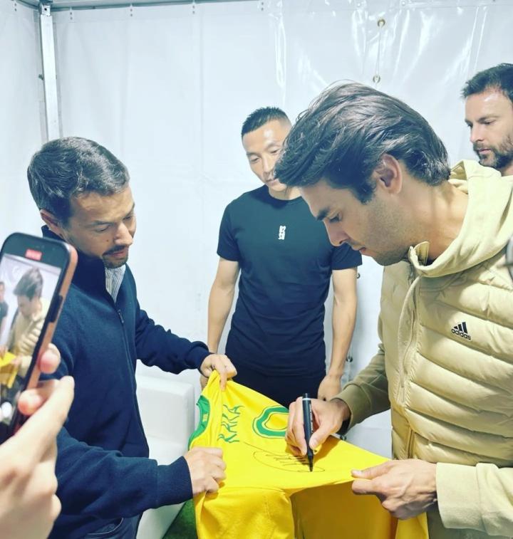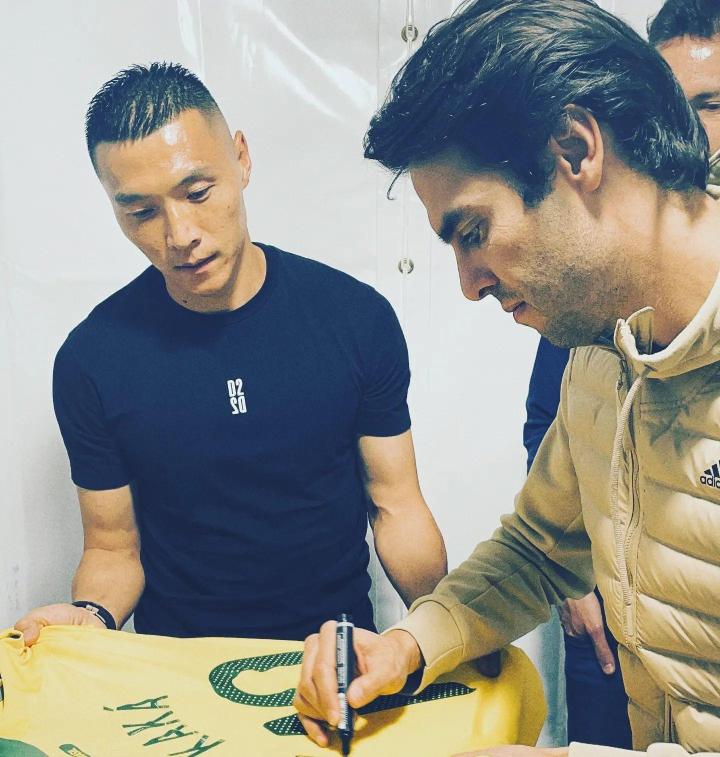 最近,世界足球巨星卡卡来到了中国参加商业活动,北京国安球员于大宝与他见面,成功追星并获赠了礼物。