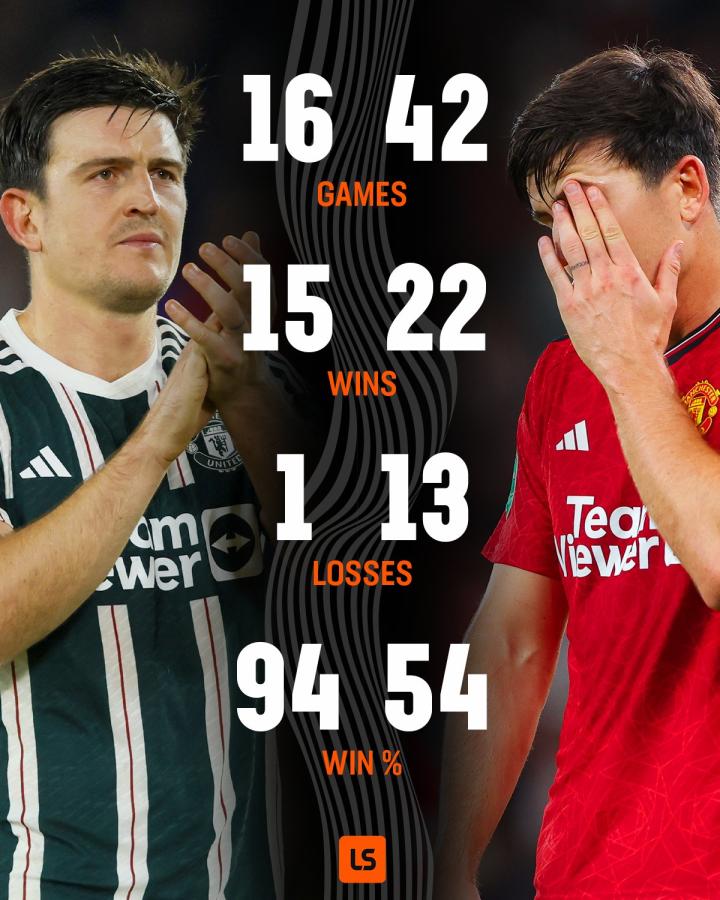 曼联最近一年有无马奎尔战绩对比有马奎尔 16场1...有据可循 @懂球帝2023-10-22 13:19曼联最近一年有无马奎尔战绩对比 有马奎尔 16场15胜1负 胜率94% 无马奎尔 42场22胜13负 胜率54%展开更多