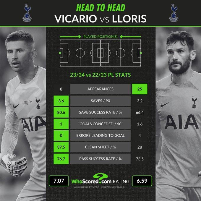 门将升级?Whoscored:维卡里奥vs洛里两赛季个人数据对比