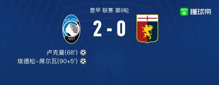 亚特兰大2-0热那亚,埃德松-席尔瓦破门,卢克曼建功
