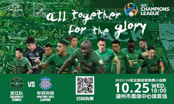 10月25日18点,浙江队将坐镇湖州奥体中心主场,迎来本赛季第二个亚冠小组赛主场比赛,对手是日本J2球队甲府风林。