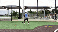 现在进行第二个训练,我们将再次使用与第一个训练相同的设置,我们把球放在标志盘中间,然后对墙传球。