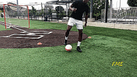 做L型转身时,用我们的脚底把球拖回来,然后在我们的脚离开球之前,把球拖到我们支撑腿后面,呈90°角,然后回到我们的前面。