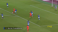 即使我们想尽快面向前方以抓住机会,例如向前传球以推进你的球队,带球进入刚刚打开的空间或射门。通过带球转身,我们将能够推进到一个更好的位置,从而帮助我们的球队。
