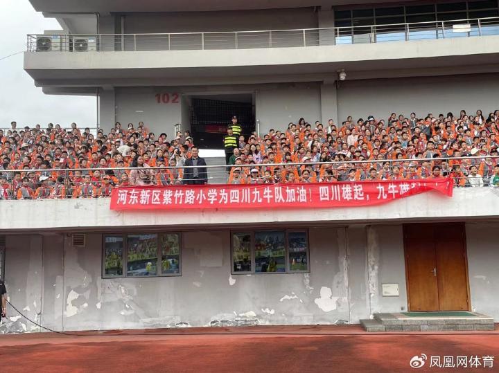 不能说九牛完全没有得到地方支持。遂宁市政府很欢迎他们把主场搬到这里,俱乐部则让球队深入当地校园跟孩子们进行互动。比赛当天,遂宁河东新区教育局还组织了几百位小学生来现场观战,孩子们喊“雄起”喊得如此自然。这种体育课上得倒是很开心。