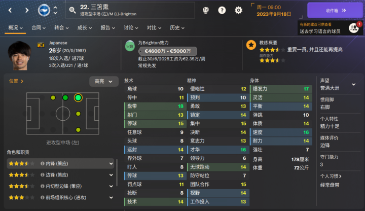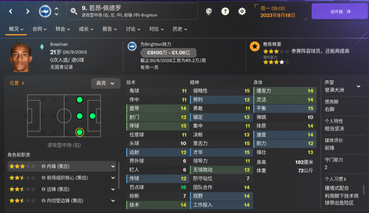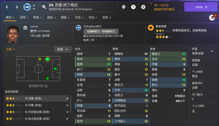 FM2024 布莱顿球员能力值更新一览