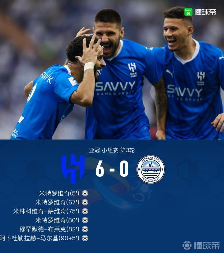 【利雅得新月6-0孟买城,布莱克1射2传,米特罗维奇戴帽+助攻】