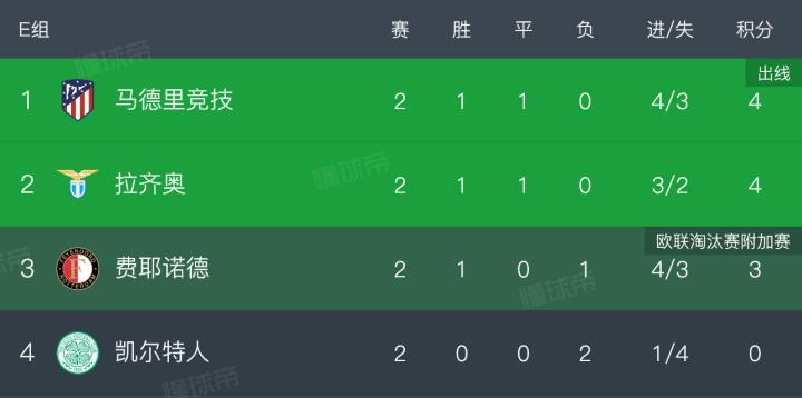 凯尔特人VS马德里竞技,费耶诺德VS拉齐奥