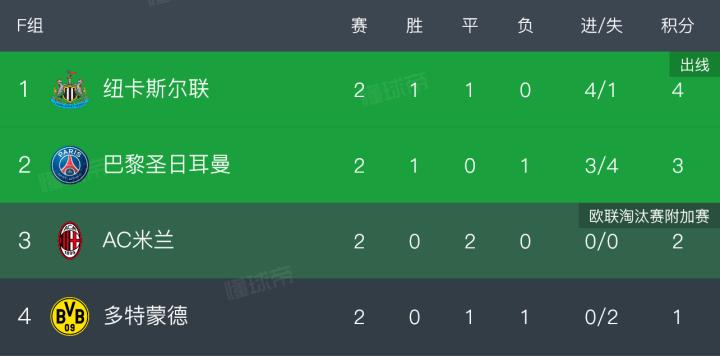巴黎圣日耳曼VSAC米兰,纽卡斯尔VS多特蒙德