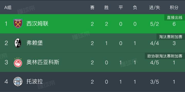 西汉姆实力鹤立鸡群,取胜及小组第一问题不大,弗赖堡看好不败,小组第二参加欧联淘汰赛附加赛。