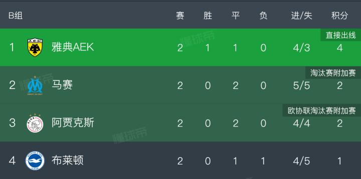 马赛VS雅典AEK,布莱顿VS阿贾克斯