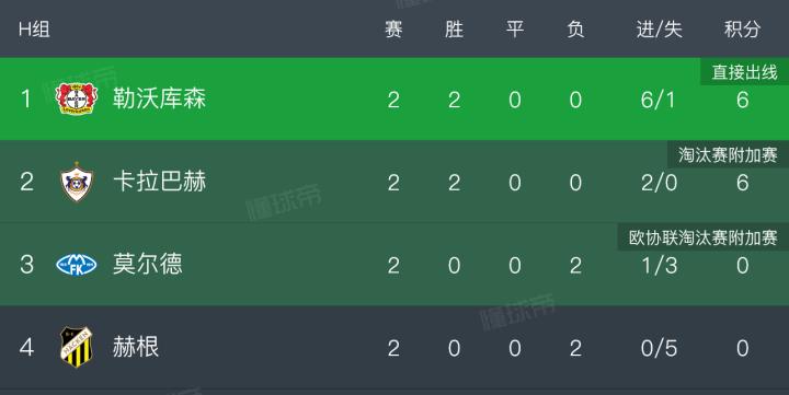 与G组一样,勒沃库森VS卡拉巴赫将决定谁将排名小组第一,两队出线都没有问题,另两个对手实力很弱。