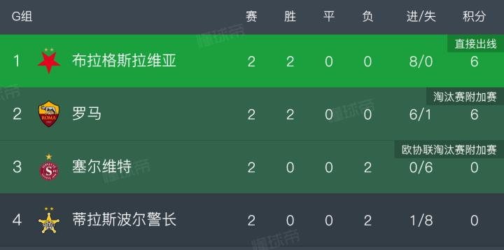 罗马VS布拉格斯拉维亚将决定谁将排名小组第一,两队都不愿意参加淘汰赛附加赛,罗马是主场,必将追求拿下。由于另两个对手实力很弱,两队出线没有问题。