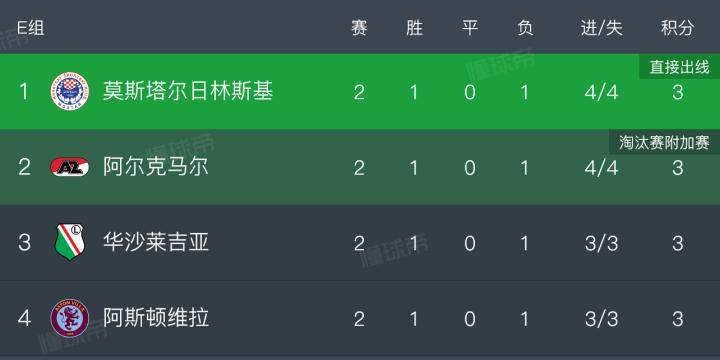 阿尔克马尔VS阿斯顿维拉,莫斯塔尔日林斯基VS华沙莱吉亚