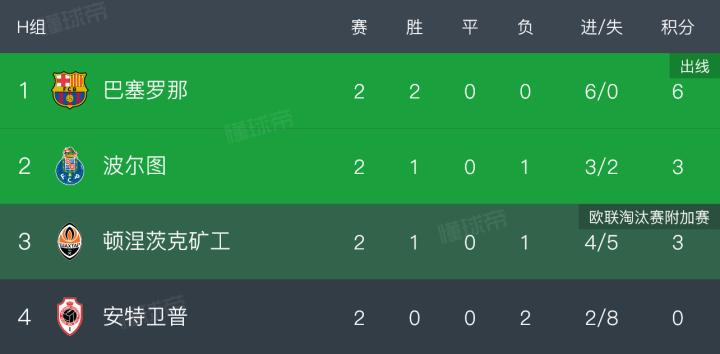 巴塞罗那VS顿涅茨克矿工,安特卫普VS波尔图