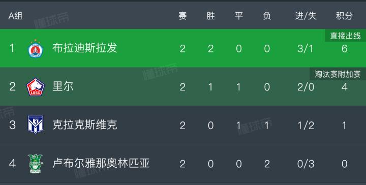 里尔VS布拉迪斯拉发将决定谁将排名小组第一,两队出线都没有问题。