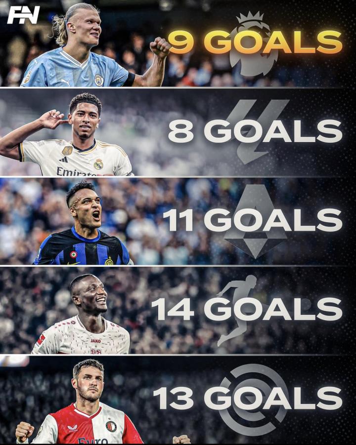 欧洲五大联赛(积分排名)现射手榜第一名球员: 有人出乎意料么?