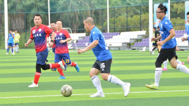 10月21日下午,2023广西大学第四届校友足球联赛最后一轮比赛在广西大学西校园体育场、北投心圩江体育公园、北投湖心岛体育公园同时举行。35+博士组最后一轮,榜一榜二的土木学院和商学院直接对话,决出最终的冠军,卫冕冠军商学院凭借灵活高效的战术占据主动,蒙聪惠梅开二度拿到金靴、曾作文、何俊、杨通杰建功,最终商学院5-1击败土木学院,反超对手拿到32+博士组的冠军,实现赛事三冠王伟业。轻工学院夺得35+硕士组的冠军,公管学院夺得35+学士组的冠军。