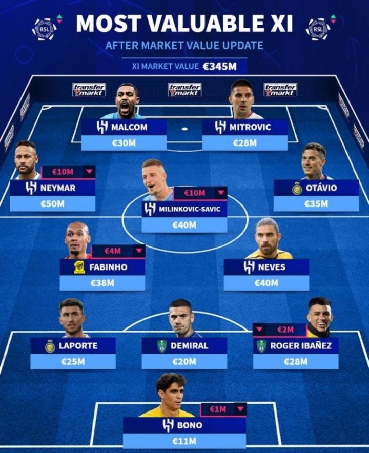 德转更新了沙特联球员身价,并盘点了目前联赛中身价...崔神马文KING @懂球帝2023-10-24 22:25德转更新了沙特联球员身价,并盘点了目前联赛中身价最高的11人阵容,其中内马尔领衔,米林科维奇等人在列,以下为具体阵容:展开更多