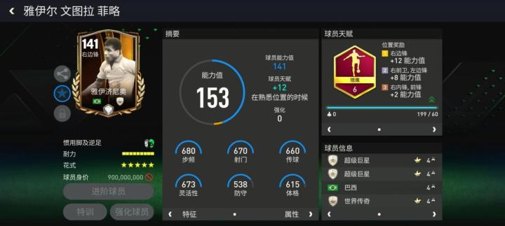 天赋方面,阿尔贝托配备了角斗士,对他的加速、传中、人盯人、铲断、拦截五项数据有所提升。花式方面,阿尔贝托配备了马赛回旋,花式星级达到四星。