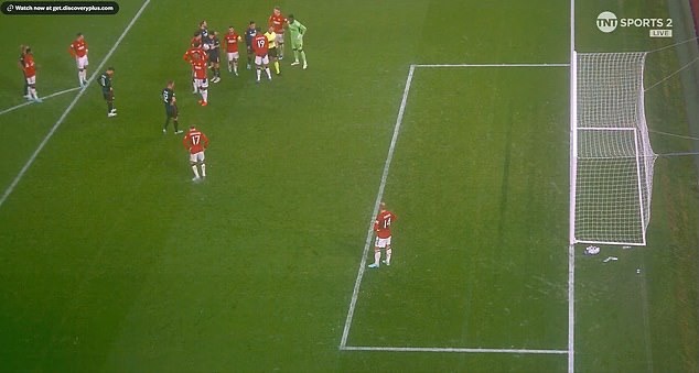 Footage shows the Manchester United man stamping on the spot using both of his feet whilst referee Marco Guida was busy dealing with remonstrating players.